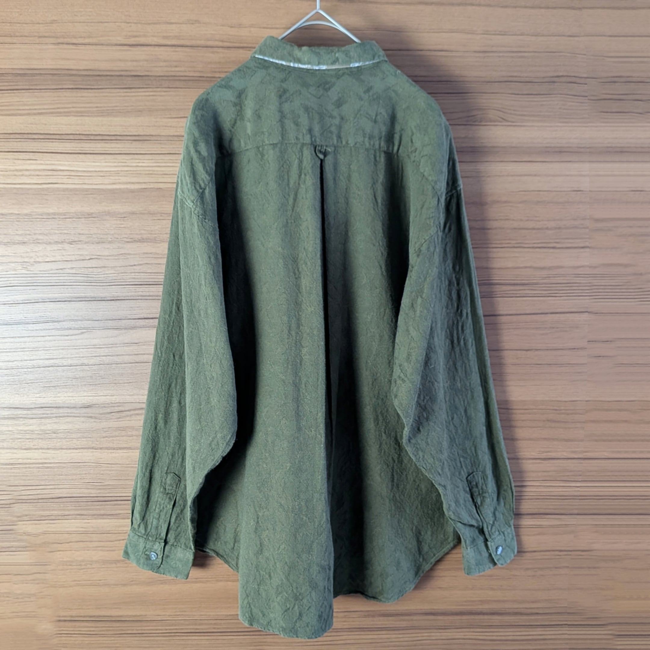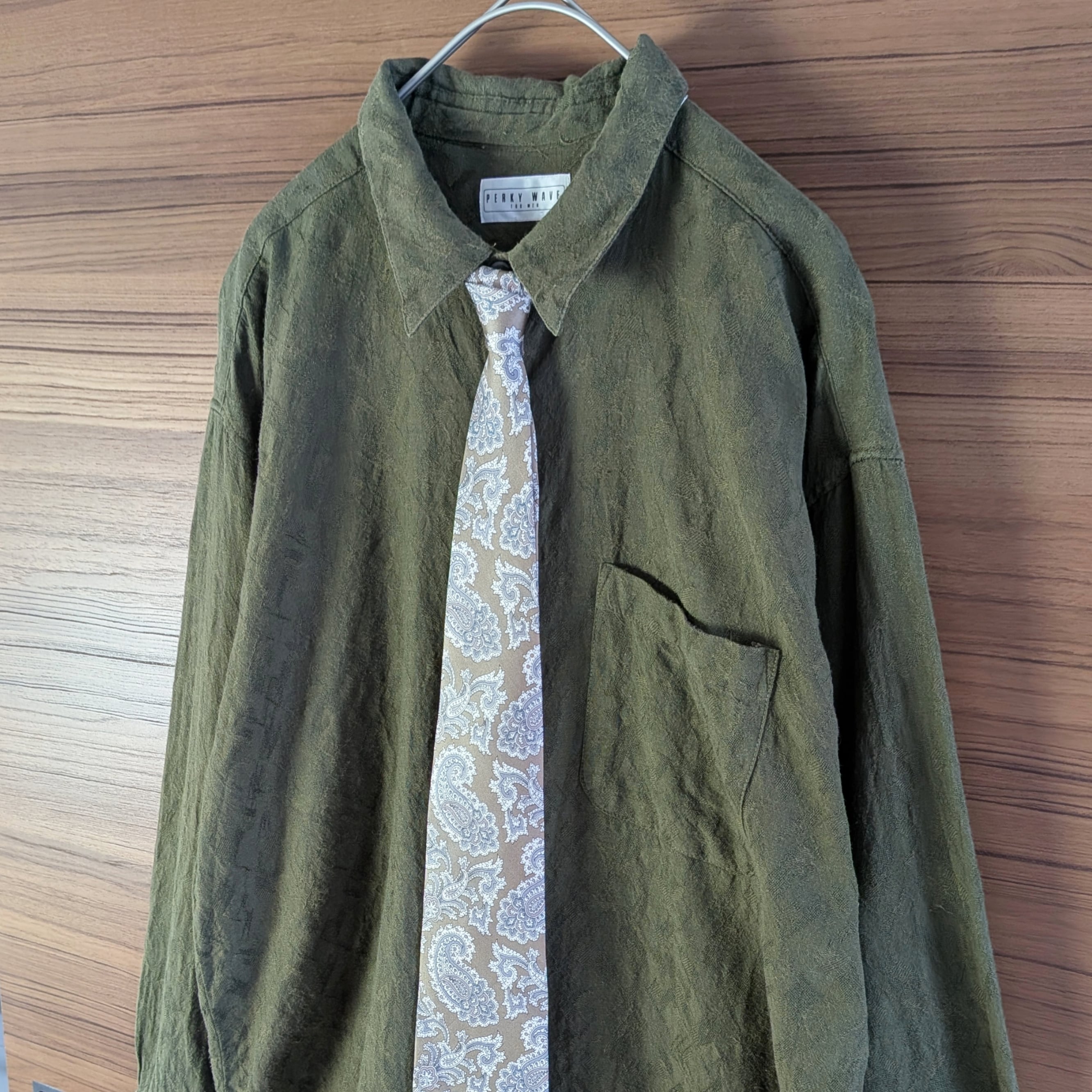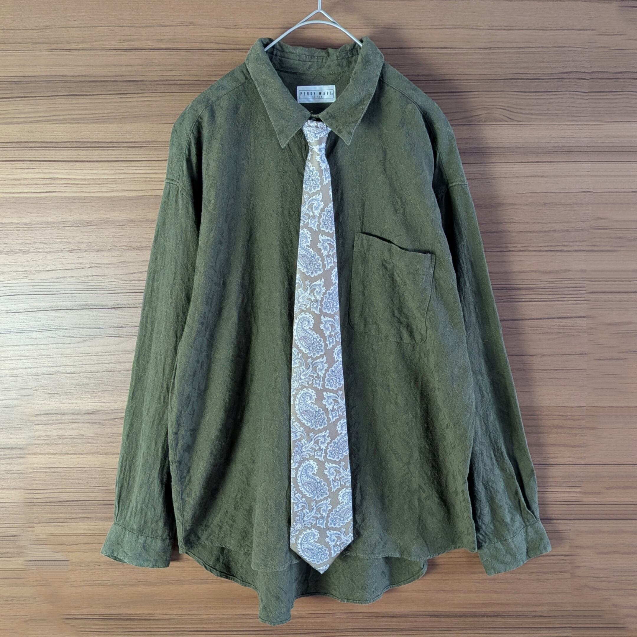 【時代を、知的に。】ネクタイシャツセット オリーブグリーン 麻・綿・レーヨン混 / ペイズリータイ / タイムレス・エレガンス / メンズL相当 古着